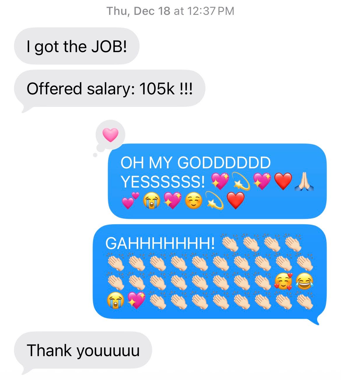 Fast forward to December 2025, I get this text message from her: